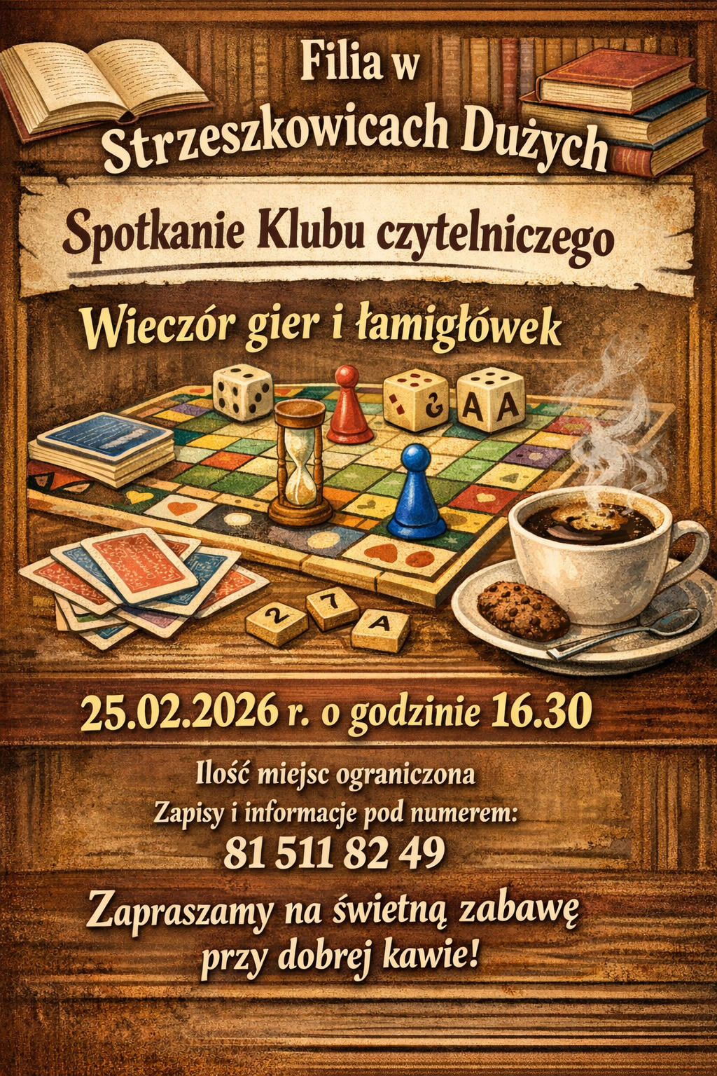 Czeka nas dobra zabawa, dużo śmiechu i miła atmosfera przy aromatycznej kawie. To idealna okazja, by oderwać się od codzienności, spotkać w dobrym towarzystwie i spędzić czas w bibliotece zupełnie na luzie.